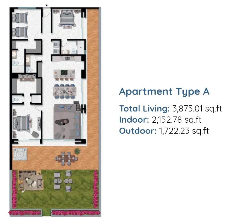 - Apartment type A: Total Living 01 Sq. ft.