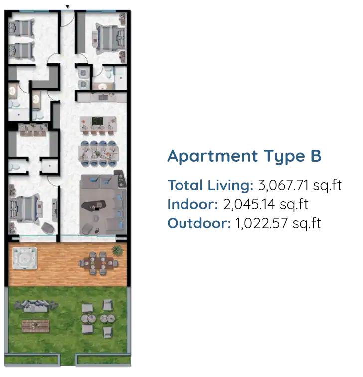 - Apartment type B: Total Living 71 Sq. ft.