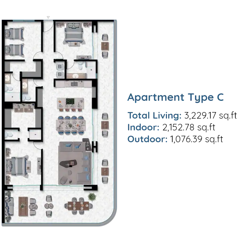 - Apartment type C: Total Living 17 Sq. ft.